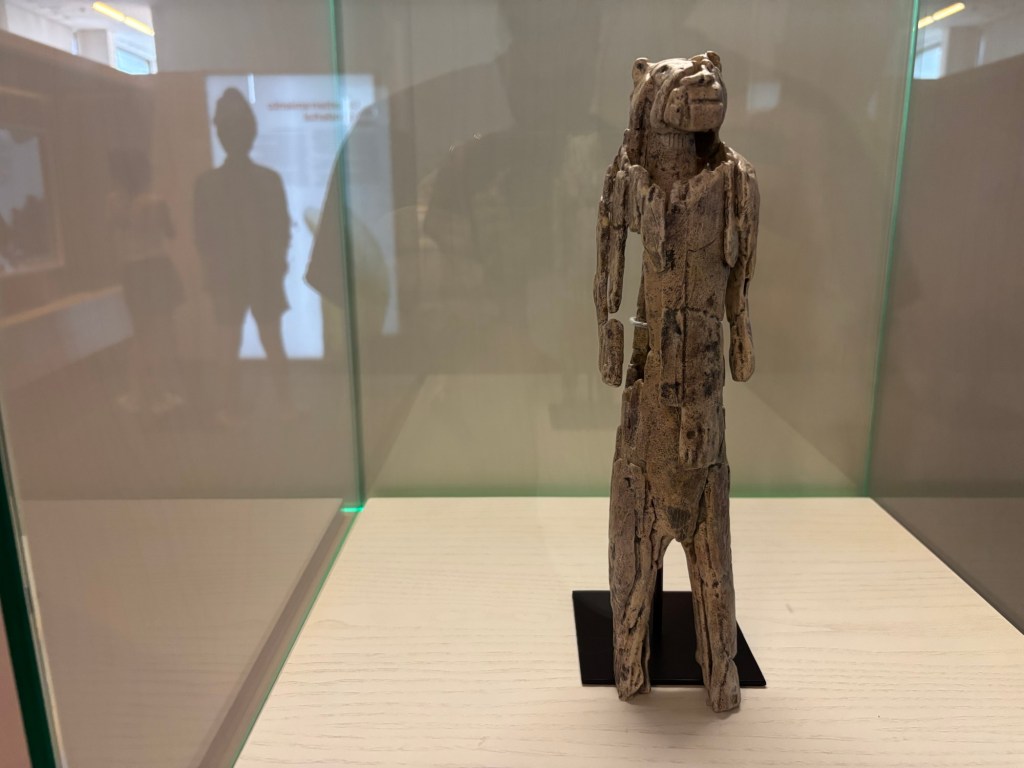 There’s a small replica on the third floor of the MEH that is, as the plaque reads, quite possibly one of the precious of all the treasures in the collection. It is a mammoth task carved into the shape of a human – but with one strange detail. The head isn’t human at all. Rather, it’s quite clearly the head of a cave lion: stocky, bull-nosed but intensely leonine. It’s known as the Löwenmensch figurine – or the Lion-man of Hohlenstein-Stadel, and its concrete evidence of our ancestors’ ability to imagine around 40,000 years ago. Quite possibly, it’s the earliest evidence for mythology out there: man-beast hybrids remain a fairly common feature of world mythology to this day. Just look at Hinduism.
