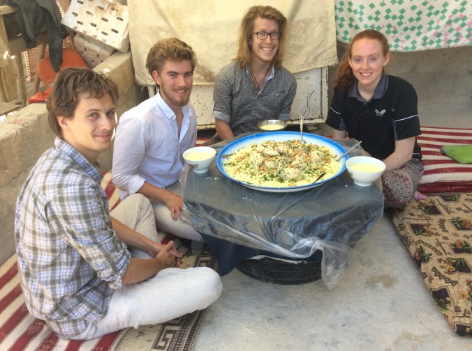 Today has been, without a shadow a doubt, the most ridiculous series of adventures yet. I’m all fired out from the mind games we’ve been playing, but that’s just the tip of the iceberg – the last of a long sequence of madcap antics since waking up at Nancy’s this morning. The family rustled up a wonderful breakfast for us in much the same line as the night before: energy food galore. Andrew and I crept away to write the family a thank you letter and packed our bags into a corner of the room to go. The family came in and served tea, and there we were, in what can only be described as a hospitable but highly awkward state of siege. We wanted to get on our way, but at the same time we kept being denied the opportunity; on our second attempt, just as we’d reached a decision, we were invited to join them for mansaf, which we couldn’t really deny, seeing as they’d already started. Then followed several rounds of ‘the Moon is in the Spoon’, which only the father of the family could get his head around, and he didn’t even play a single round with us. Another hour and a half later it was pushing three o’clock and they looked to be after a second night, which had to be postponed if we should ever get to see Dana at all. We had four oranges we could have given them as gratitude but it seemed more awkward a gift than none at all, paltry as it was. So having got them out, we packed them back into the bag and made our broken farewells before finally crossing the threshold and striking out for the road, though not before receiving another invite should we ever be in Tafileh again.