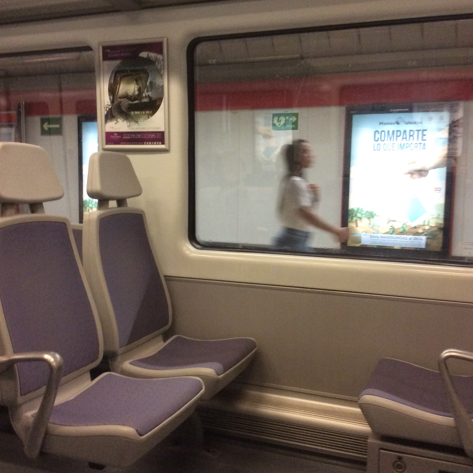 The tannoy goes off for Nuevos Ministerios and she leaves.