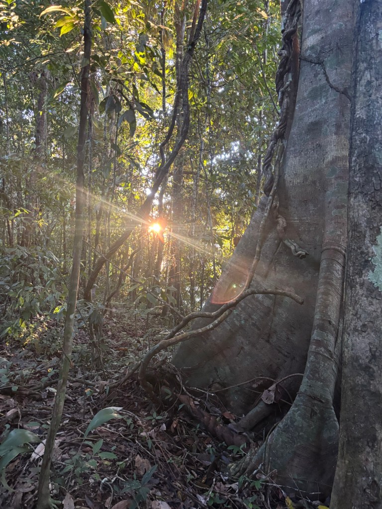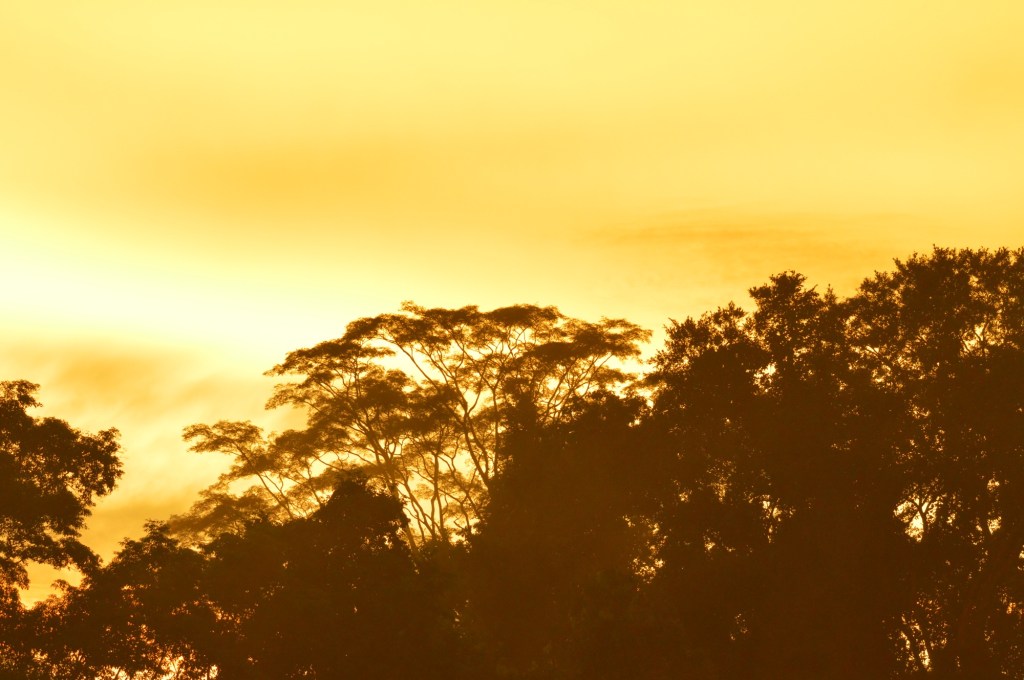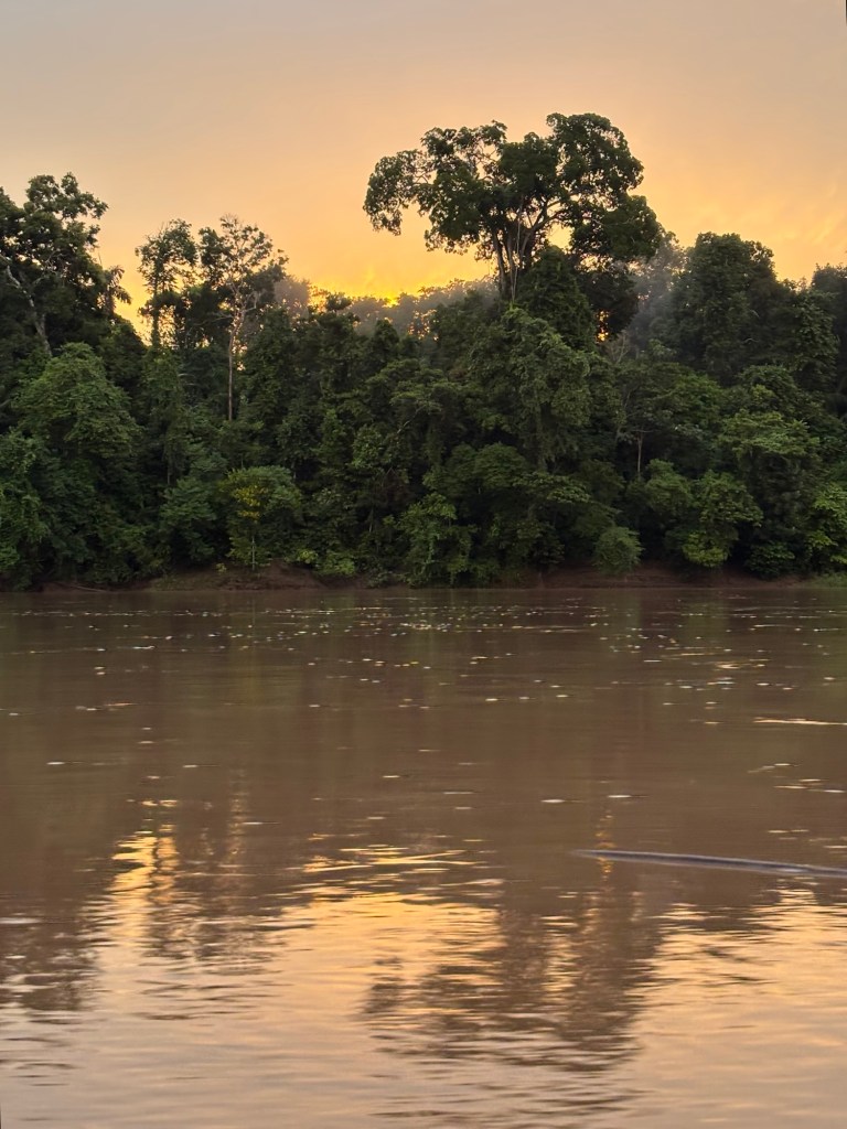 Dawn breached like a golden whale through the clouded sky, bathing the forest in its hopeful glow. I haven’t had as many Amazonian sunrises as I’d have liked due to the inclement weather, but this morning made up for it.
