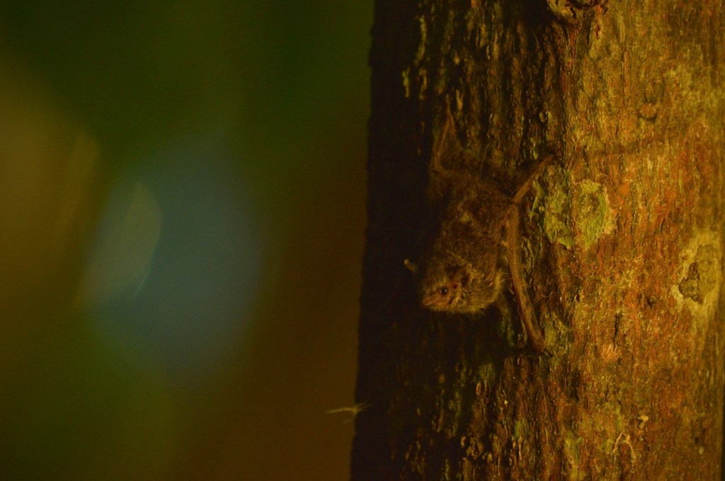 After a chat with Rive about the natives over a bowl of Bernadino’s homemade snacks, we went into the forest to look for bats roosting in the great kapok tree. The flooded creek was still nearly waist high in parts, so we couldn’t reach the observation tower to watch the parrots flying in to roost at sunset, which was a shame. Seeing a different kind of bat made up for it though.