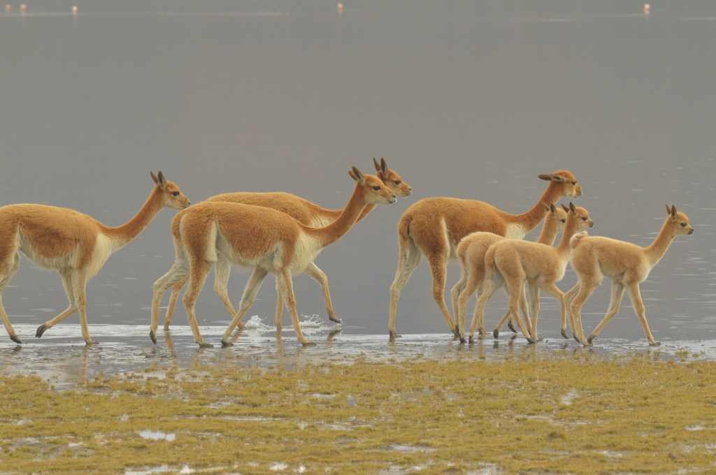 There was a fair bit of activity around the edge of the lake – mostly free-roaming llamas and alpacas, but a couple of small herds of vicuña, too.